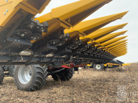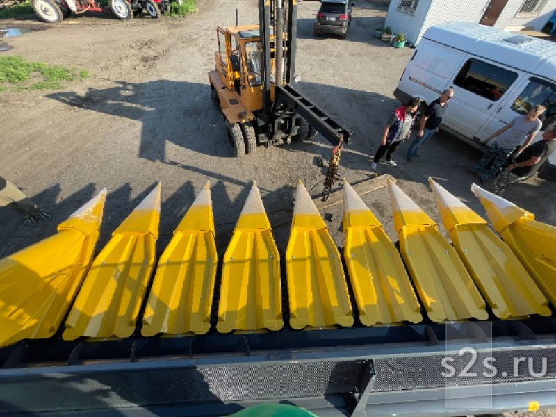 Длинные делители жатки для подсолнечника обеспечивают исключительную производительность. Во время транспортировки они легко складываются, чтобы обеспечить безопасную транспортировку подсолнечной жатки.